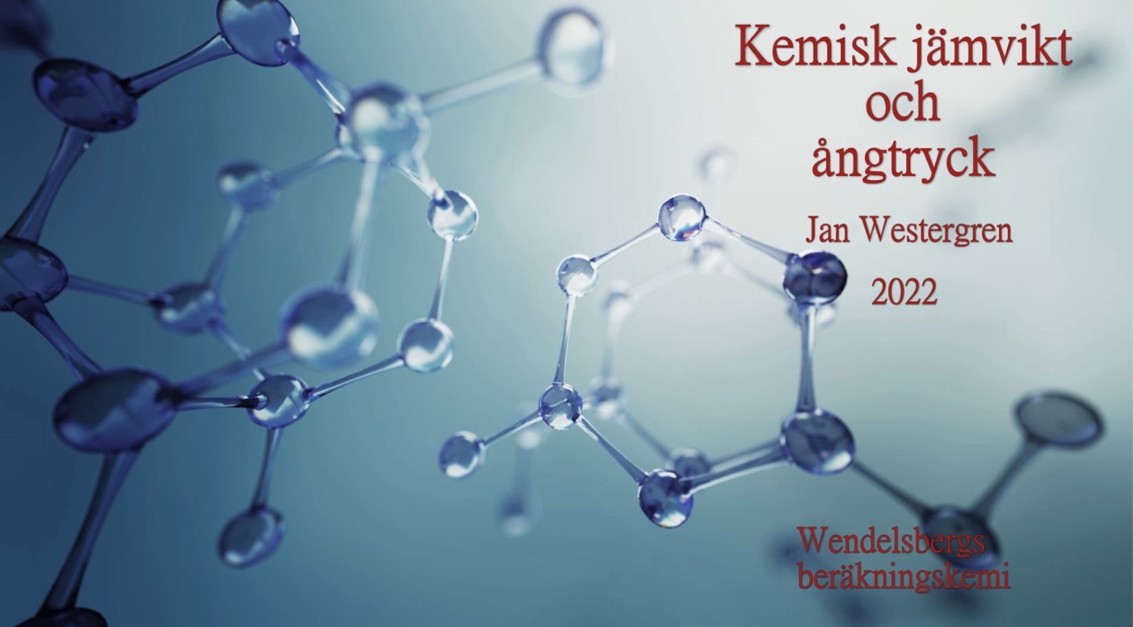 Så vill du friska upp minnet från dina studier eller vill du lära dig något nytt så kontakta oss på Wendelsbergs beräkningskemi. Vi erbjuder skräddarsydda föreläsningar och workshops inom många olika områden. Förutom fysikalisk kemi omfattar vårt kursutbud även fysik, termodynamik, matematik och simuleringsmetodik. För mer information kontakta Jan.Westergren@wendelsbergskemi.se.