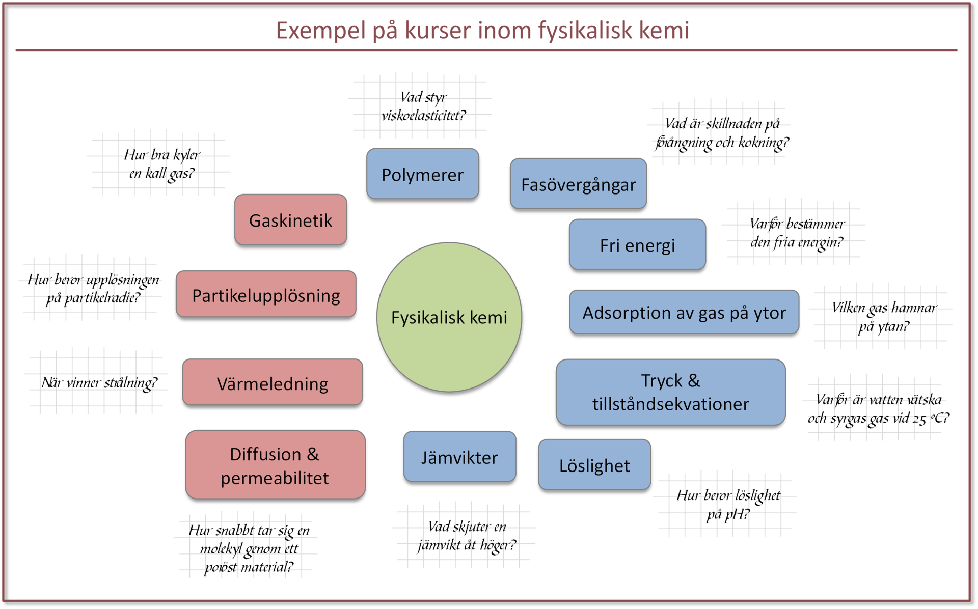 Så vill du friska upp minnet från dina studier eller vill du lära dig något nytt så kontakta oss på Wendelsbergs beräkningskemi. Vi erbjuder skräddarsydda föreläsningar och workshops inom många olika områden. Förutom fysikalisk kemi omfattar vårt kursutbud även fysik, termodynamik, matematik och simuleringsmetodik. För mer information kontakta Jan.Westergren@wendelsbergskemi.se.